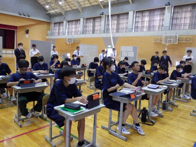 本日、社会の授業研究会が行われ、福島県内から約20名の先生が参観にいらっしゃいました。体育館での授業公開となり、いつもと違った雰囲気の中でしたが、生徒はよく考え、つぶやき、話し合い、発表していました。参観された先生方からも貴重なご意見をいただき、実りある1日となりました。