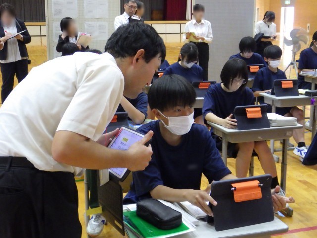 中間テスト1日目です。生徒の解答状況を心配そうに見守る教員の眼差しがありました。