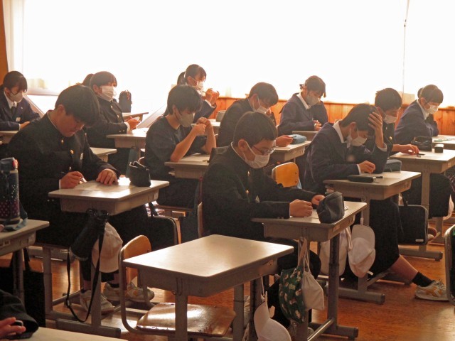 3年生は実力テストを行っています。1点でも多くとれるように頑張っています。