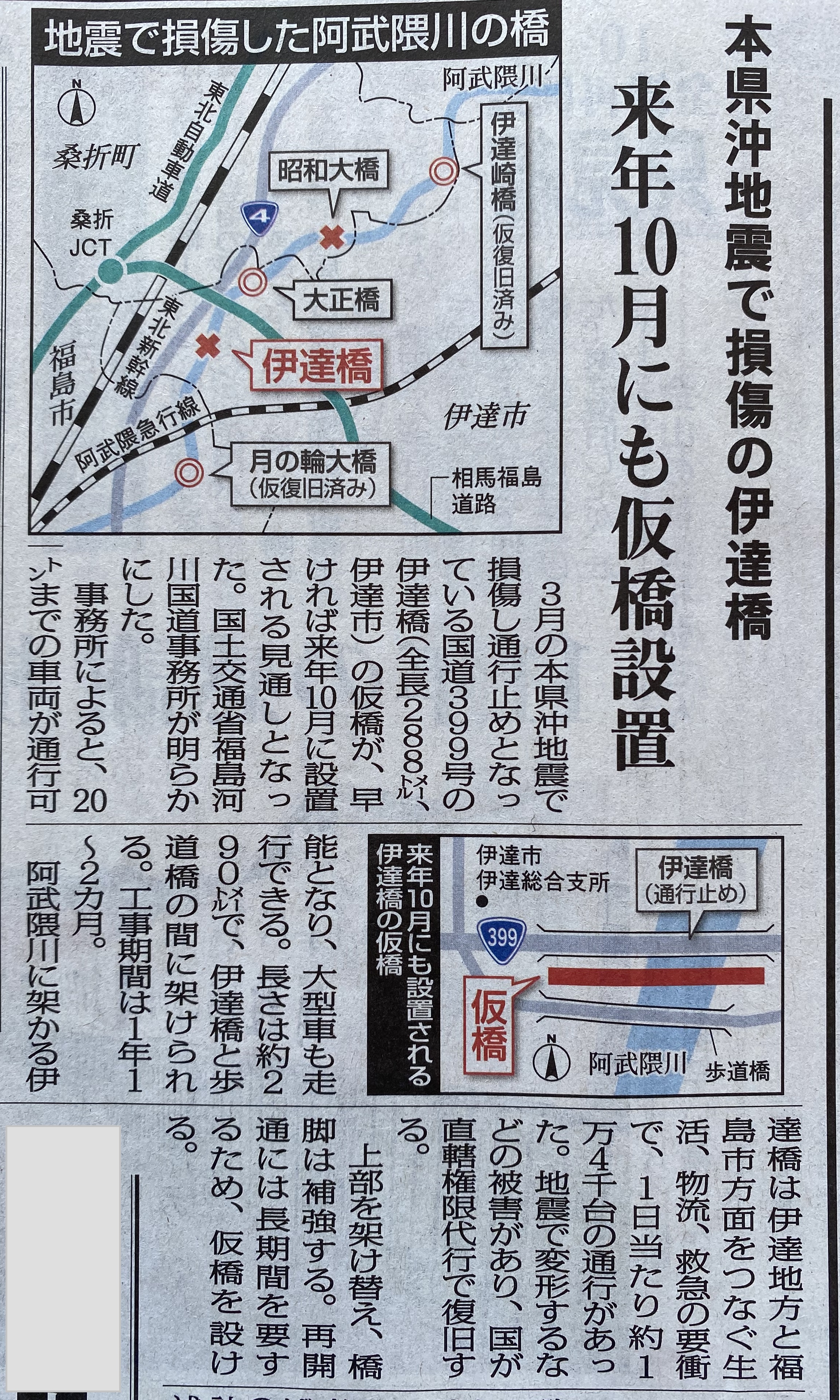 伊達橋の仮橋が早ければ来年10月に設置されるという記事がありました。