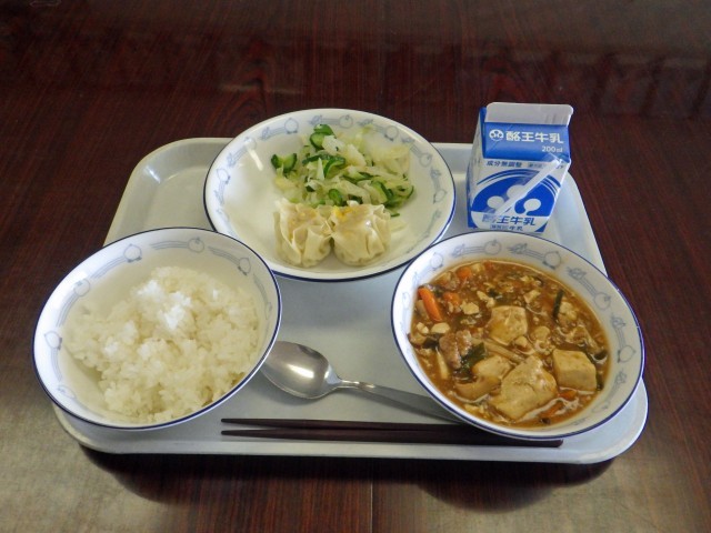 本日「10月2日」は、語呂合わせで「とう・ふ」の日です。マーボー豆腐は挽肉もたっぷり入っていて、おいしく栄養もしっかりとれました。ほんのり甘いコーンシュウマイや浅漬けの中華風であっという間に完食です(...