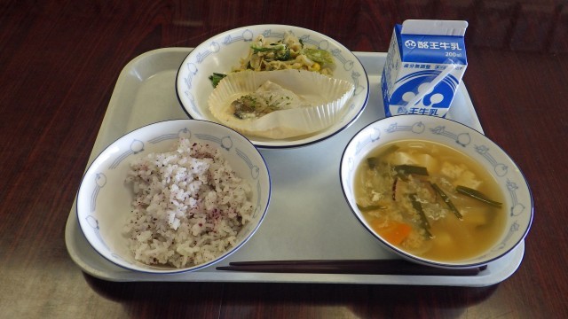 本日は、さつまいもごはん。さつまいもの甘みを味わいました。さらに、ごましおも付いて、食が進みます。きのこ入り信田煮やごぼうサラダ、引き菜汁と、野菜もたっぷりいただきました。本日も、大変ごちそうさまでし...