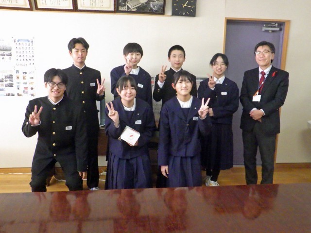 赤い羽根共同募金で集まったお金を社会福祉協議会の方にお渡ししました。一人一人の善意が社会のために役立つことをうれしく、そして、誇りに思います。