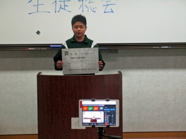 生徒総会後に、各種表彰が行われました。今回は、県造形作品展、ふくしまを十七字で奏でよう作品、男子ソフトテニス研修大会Sリーグ、伊達市優秀部活動(男子バスケ部・吹奏楽部)で該当生徒・部が表彰されました。...