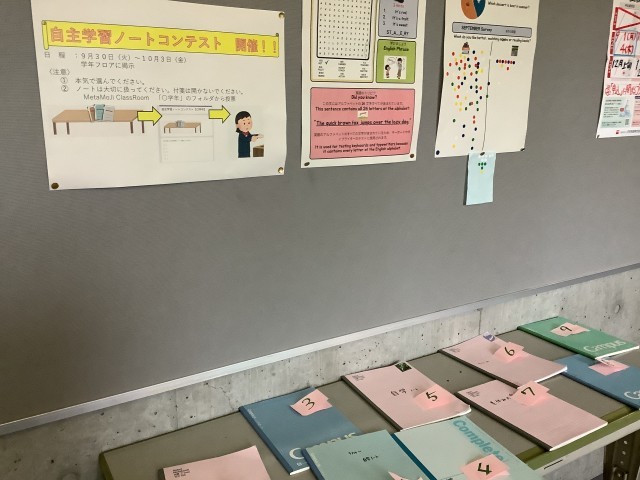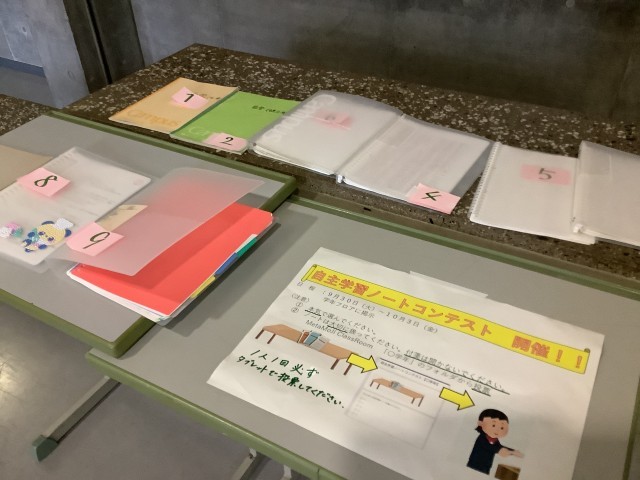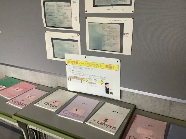 中間・前期試験も終わり、試験の振り返りが行われています。この機会に、どのような家庭学習を行ったのか、家庭学習したノートを提示し、どのような学習が素晴らしいか「家庭学習コンクール」が学芸委員会で行われています。どのように学習すると成果が現れるのか・・・。ノートを見て、学習の習慣化を!