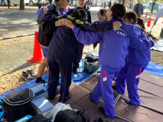 10月15日、県中体連駅伝大会が、南相馬市の馬事公苑で行われました。各域内の大会を勝ち抜いた上位校で争われ、本校女子駅伝部も出場しました。晴天の下、選手は梁川中女子駅伝部一丸となって頑張り、それぞれが自己ベストを出していきました。東北大会や全国大会などに出場することはできませんでしたが、今まで練習した成果を出し切りました。