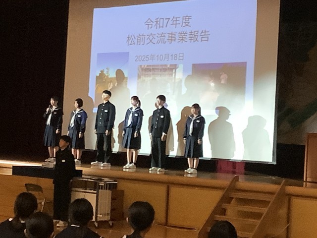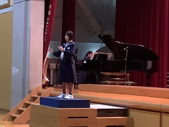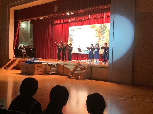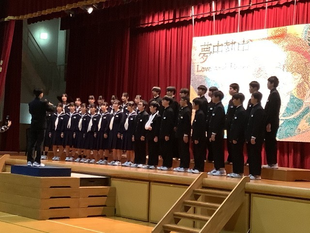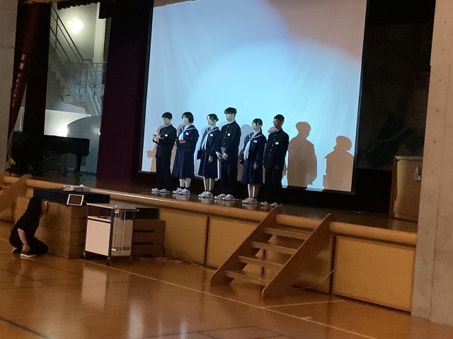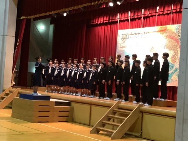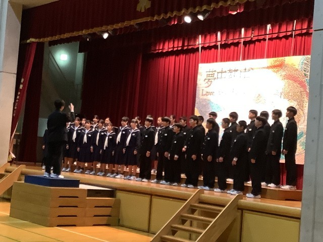 清梁祭が始まりました。清梁祭実行委員長、佐藤優真さんの開会宣言、吹奏楽部のファンファーレとともにステージ発表が進みました。最初は合唱コンクール。1年生、2年生、3年生の順番に学年合唱と各クラスでの合唱を披露しました。3年生の学年合唱は3月9日。1組は「YELL」2組は「あなたへー旅立ちに寄せるメッセージー」3組は「虹」。どのクラスも素晴らしい合唱です。その後、各学年の総合的な学習の時間について、また松前交流についても発表がありました。