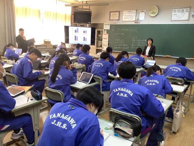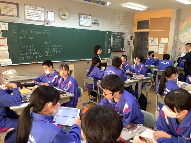 本日2校時、3年社会科、公民の「現代の民主政治」について、北先生による研究授業が行われました。選挙の投票を義務化することについて、どのように考えるか・・・。個人、グループで考察し、全体で話し合う対話的な授業でした。「義務化することによって、今まで政治に関心がない人でも、向き合うきっかけになるのではないか」などの意見も出され、課題について深めることができました。