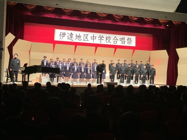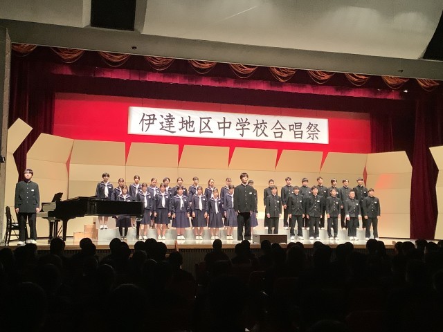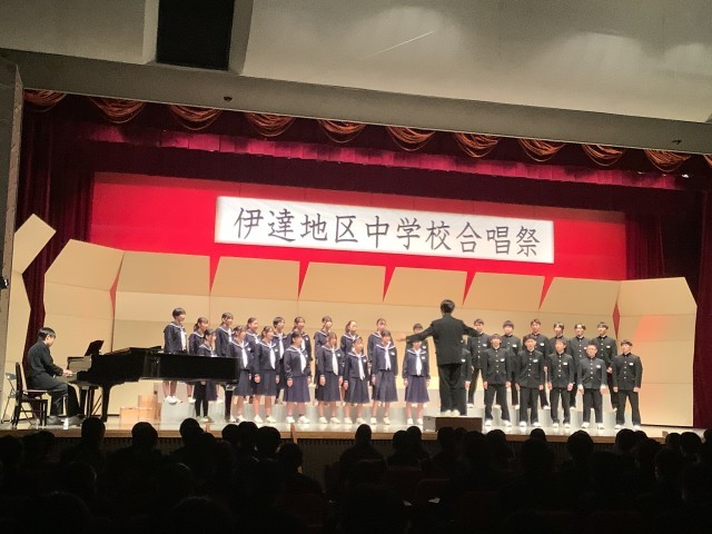 10月29日、この日は第23回伊達地区中学校音楽祭が伊達市ふるさと会館で行われました。本校からは3年3組が出場し、文化祭で披露した「虹」を発表しました。指揮者に合わせて、抑揚をつけた、きれいなハーモニーをMDDホールに響かせていました。素晴らしい合唱をありがとう!