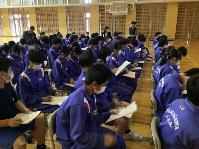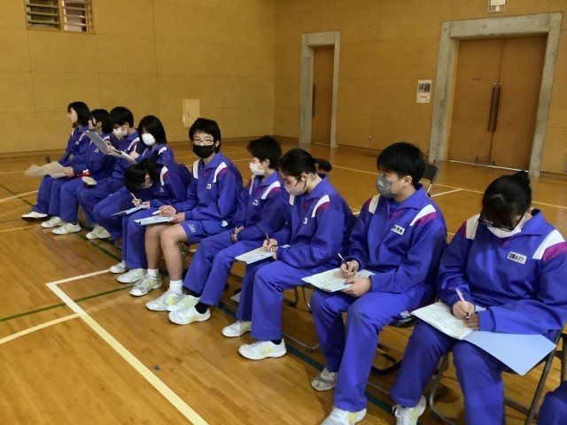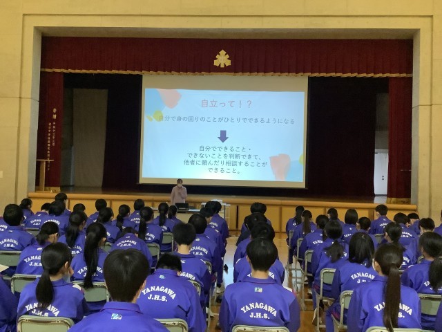 12月3日、性教育の一環として思春期講座が第2学年で行われました。講師に大川レディースクリニックの庵原順子先生をお迎えし、男女交際について話をいただき、演習として様々な対応について考えていきました。