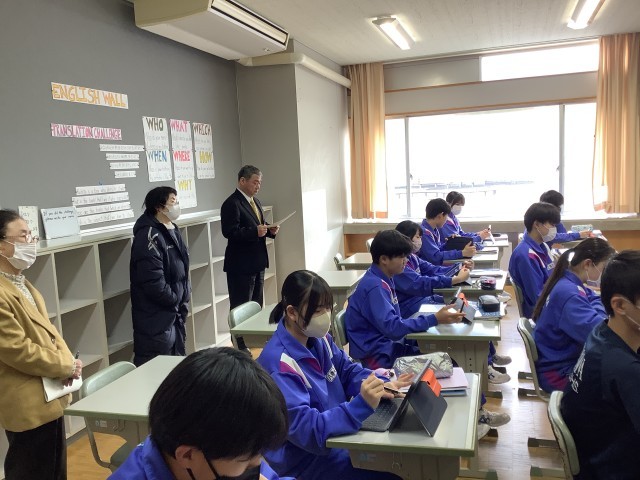 現在、1,2年生を中心にインフルエンザが蔓延しています。爆発的な流行まではいきませんが、体調を崩してしまうと罹患してしまうので、体調不良の多い、1、2年生は昨日、今日と午前中授業になりました。体調をしっかり整えて、学校生活を送れるようにしましょう。本日は学校評議員会が行われました。評議員の皆様に、学校評価をご覧に入れ、実際の授業を見ていただきました(授業は3年生のみ参観しました)。タブレットを使って、集中して授業をしている・・・などの話もありました。今回の評価を次年度の教育課程に生かしていきたいと思います。