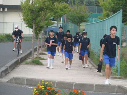 子供たちは、奉仕作業できれいになった歩道を通学しています。