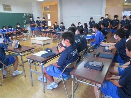生徒会本部役員、各専門委員長、各クラス学級委員が月に1回集まり、学校生活について話合いが行われます。