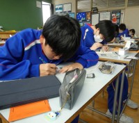 今日はお月見献立。さつま芋ご飯 すまし汁 うさぎハンバーグみたらし おかか和え お月見デザート 麦茶というラインナップです。