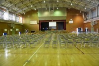 (1)入口・受付は、体育館玄関(南側)になります。受付時に学級名簿の該当欄に○印をつけてください。お車の駐車は、校舎周辺にお願いします。