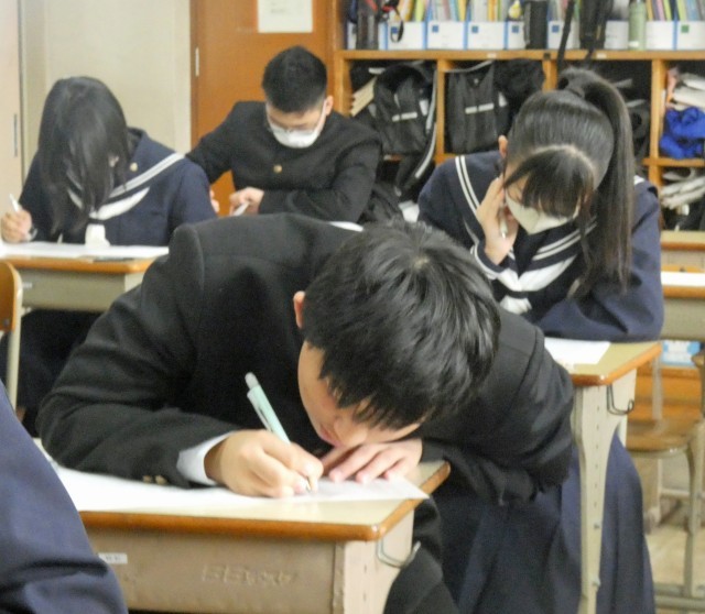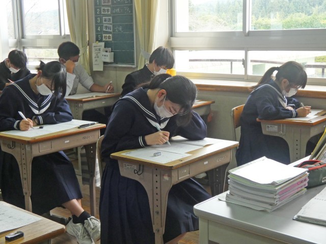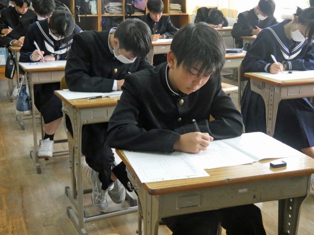 3校時 3年2組 英語 真剣なまなざしで集中して取り組んでいます。