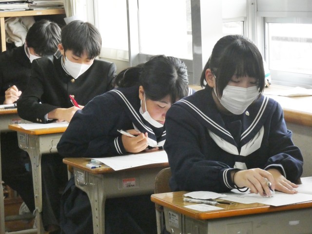 3年1組 3校時 英語   進路達成にむけての強い気持ちが伝わってきます。