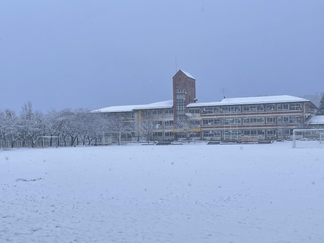 今朝は水墨画のような雪景色となりました。雪は午後2時頃まで続くと見込まれます。