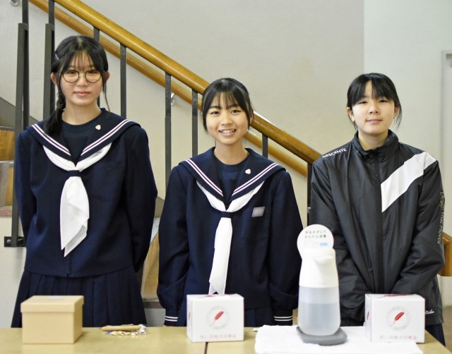 現在、生徒会役員を中心に、「NHK海外たすけあい」および「赤い羽根共同募金」を行っています。この活動は、世界各地の紛争や災害の被災者支援、また、地域の福祉活動の充実を目的としています。海外支援では、例えば1,000円の寄付で、海外の子どもたち50人分の医薬品支援が可能となります。