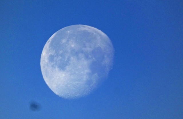 今朝は、凛とした晴天となりました。澄み切った空に有明の月が浮かんでいます。