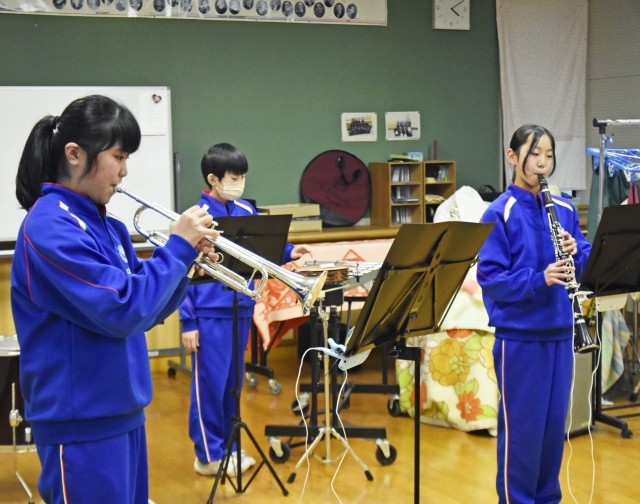 12月8日(月)今日の部活動 公開日 2025/12/08 更新日 2025/12/08 トピックス 今週末の12月13日(土)に福島市音楽堂で開催されるアンサンブルコンテストに向けて、練習に熱が入ります。1年生は管打楽器四重奏で出場します。曲は「Miniature Suite」です。