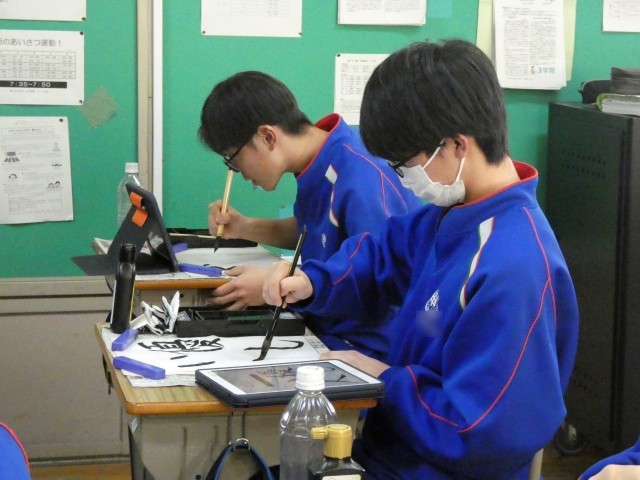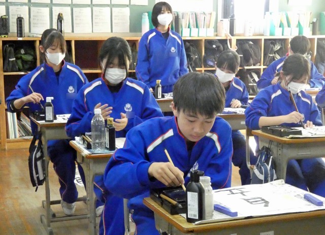 1月14日(水)3校時の授業 公開日 2026/01/14 更新日 2026/01/14 トピックス 2年2組 立志式に向けて将来を見据えて自らの生き方を見つめ直し、一文字一文字に決意を込めて、丁寧に筆を走らせていました。