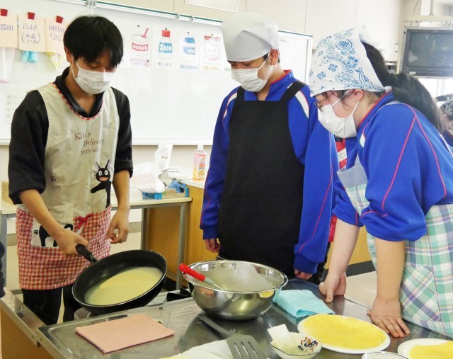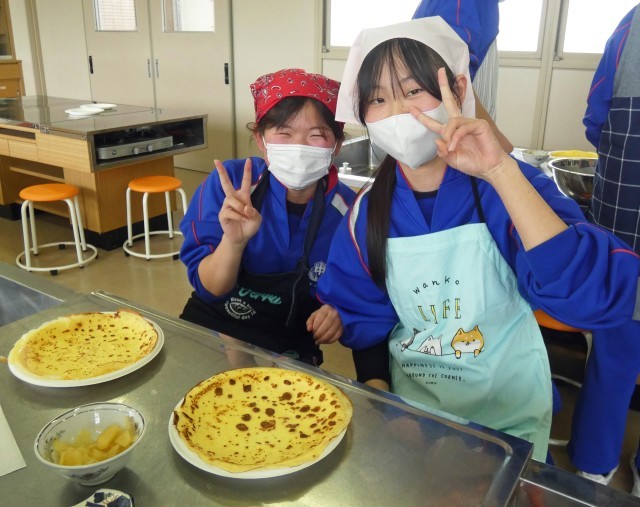 2年2組 家庭科 調理実習  米粉クレープづくり