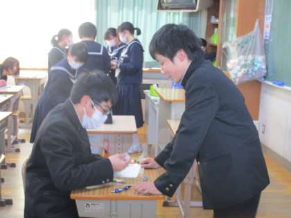 さっそく、終わったばかりのテストの確認をする松陽生。