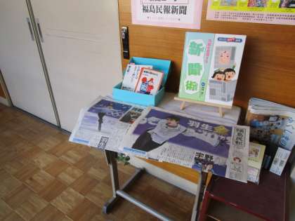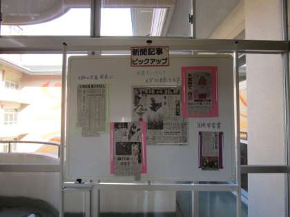 新聞の掲示は、やはりオリンピック。学校司書さんが掲示しています。