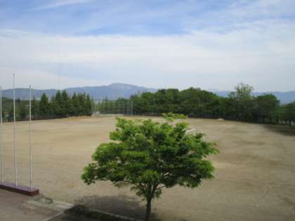 気持ちの良い青空。2階の階段踊り場から見える風景です。