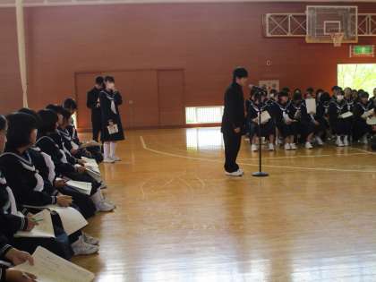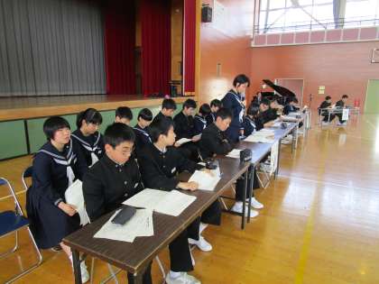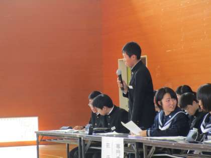 生徒会総会 公開日 2019/05/10 更新日 2019/05/10 重要 各委員会から活動の目標や活動計画を発表します。みな堂々とした発表ぶりです。 質疑応答では、1年からも質問が出されました。それに対し、各委員長も的確に答えていきます。