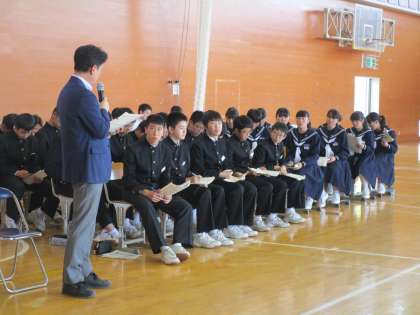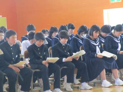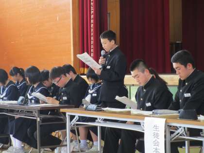 生徒会総会 公開日 2019/05/10 更新日 2019/05/10 重要 続いて、各部活動の部長からも目標や計画を発表しました。互いの活動を知る良い機会となり、みな真剣に参加しました。 最後に、教頭先生の講評では「合意形成」ということについて、お話がありました。 3年生は体を自然に話し手の方に向けるなど、聞く姿勢も下級生の模範です。 充実した中学校生活を送るために、自分たちで学校をさらに良くしていこうという自覚と意気込みを感じることができた生徒会総会でした。
