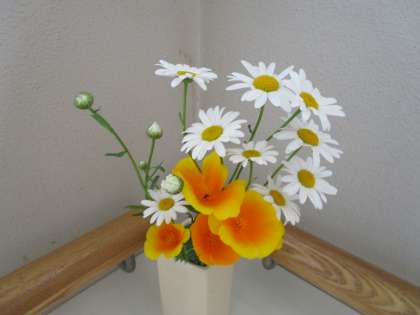 階段踊り場に飾られたお花。生徒の心もほっとします。