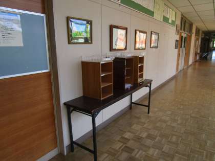 テスト前のため、職員室は入室禁止です。配付物は廊下におかれます。