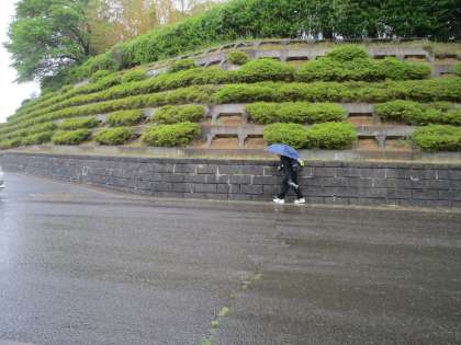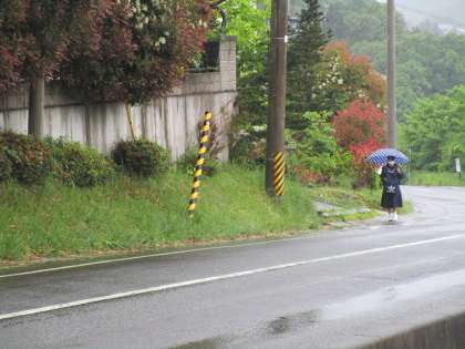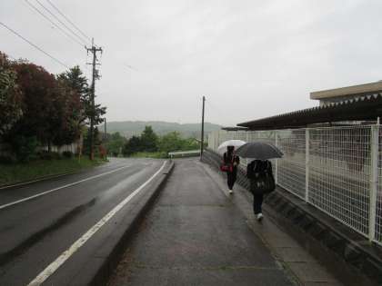 今日は雨の中の登校です。徒歩通の生徒も傘をさして無事登校しました。
