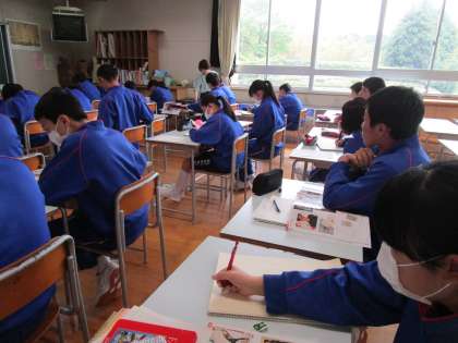 自画像に取り組んでいます。自分を見つめ表現する主題を考えていました。