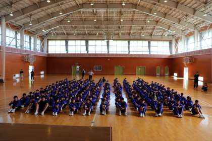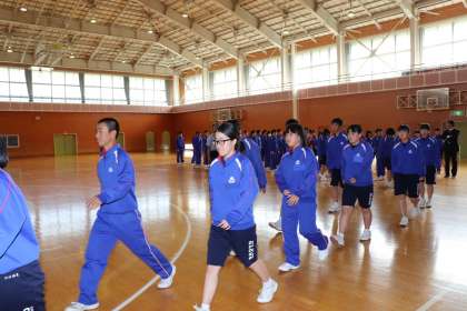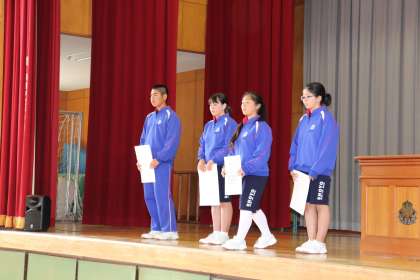 全校集会 公開日 2019/05/22 更新日 2019/05/22 重要 放課後に行いました。はじめに、表彰披露。陸上やテニスで入賞した生徒が披露されました。次の校長講話では、地域の方々からの応援について話があり、寄贈していただいたカメラで記念撮影をしました。