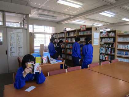 本を選んだり、本を読んだり。先生方も一緒に読書をすすめています。