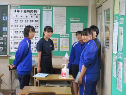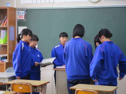 3年生の教室で。パートごとに合唱練習。きれいな歌声です。