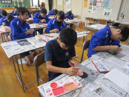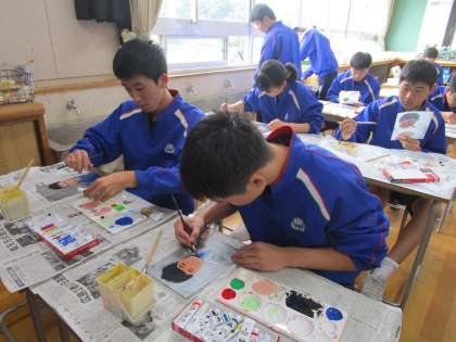 自画像ももうすぐ完成。松陽祭で展示します。最後まで心を込めて。
