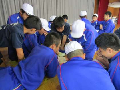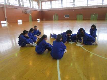 作戦がものを言う 公開日 2019/10/08 更新日 2019/10/08 重要 3年生の選択体育。次の種目のオリエンテーションの後に、体育祭の種目について学級ごとに作戦を立てました。最後の体育祭。燃えます。