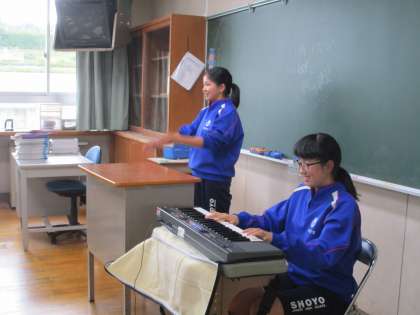 1年生の教室でも合唱練習。楽しく歌っていました。