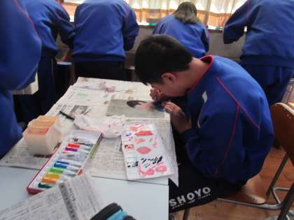 自画像も仕上げです。最後まで丁寧に思いを込めて。