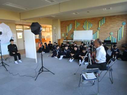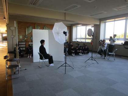 3年生は卒業アルバムの個人撮影を行いました。笑顔で、ハイ、チーズ。