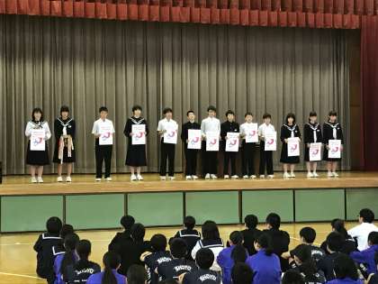 中体連新人大会の表彰がありました。暑い夏を皆で乗り越えた成果です。