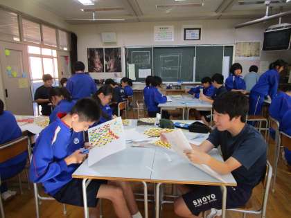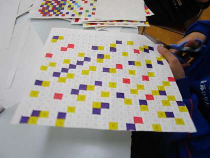 放課後 公開日 2019/10/17 更新日 2019/10/17 重要 ビッグアートに取り組むに取り組む係の生徒たち。 各学級で1枚1枚丁寧に、マス目を塗った用紙をいよいよ貼り合わせて行きます。 どんな絵が完成するのか、まだ誰にもわかりません。