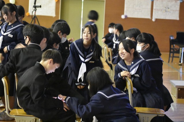 1年生 福祉体験発表リハーサル 緊張感を持って取り組んでいました。