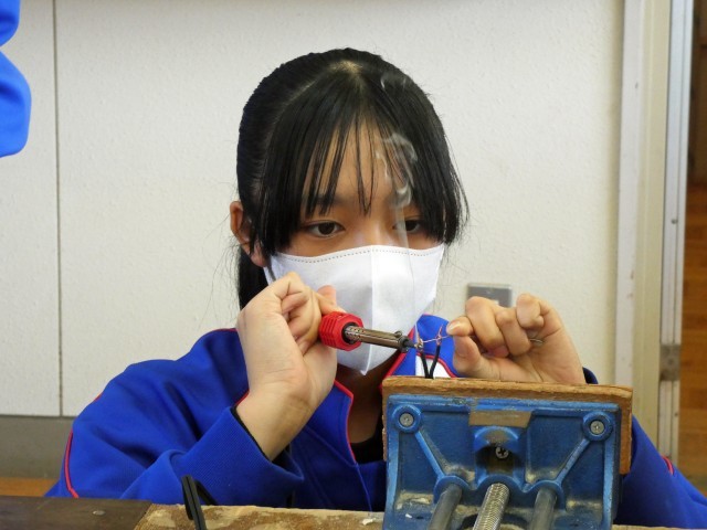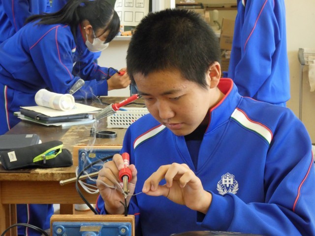 2年1組 技術 はんだ付け 指先に神経を集中させて・・・