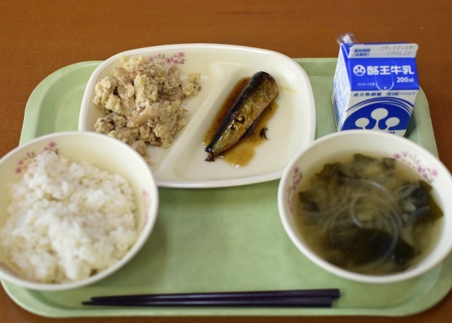 今日の献立は、麦ご飯 玉ねぎのみそ汁 いわわしの生姜煮 五目おから 牛乳です。