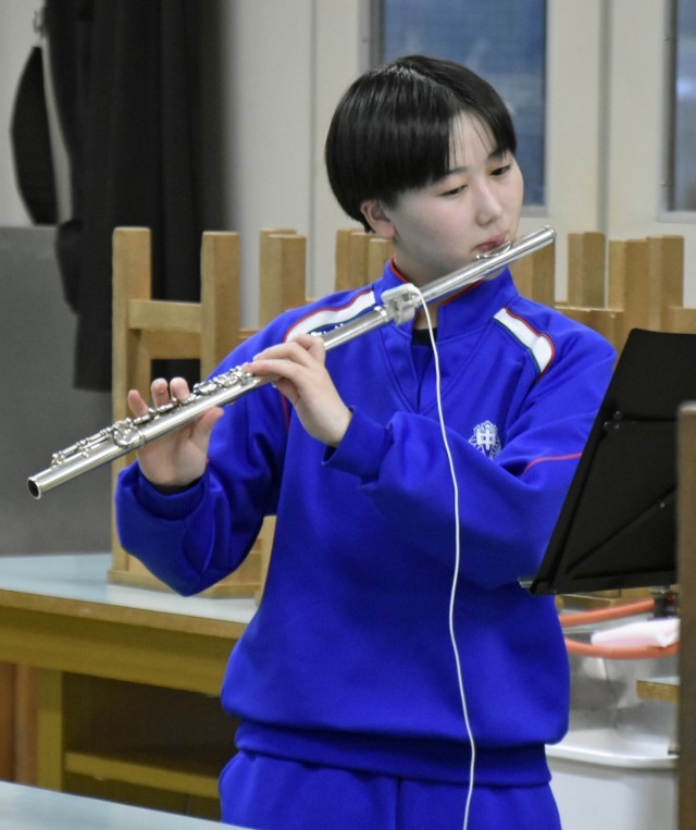2年生は木管三重奏で出場します。曲は「Seasons Floral Scented」。目標は、「自分たちの納得のいく演奏をして、金賞を目指す!」です。頑張れ~!